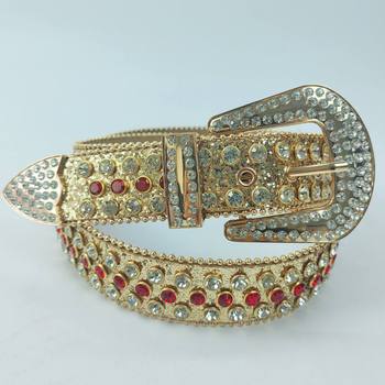 Bán Buôn Hot Bán Sáng Bóng Chữ Thập PU Da Thắt Lưng Vàng Rhinestone Vành Đai Đầy Màu Sắc Hip Hop Da BB Thắt Lưng Người Đàn Ông
